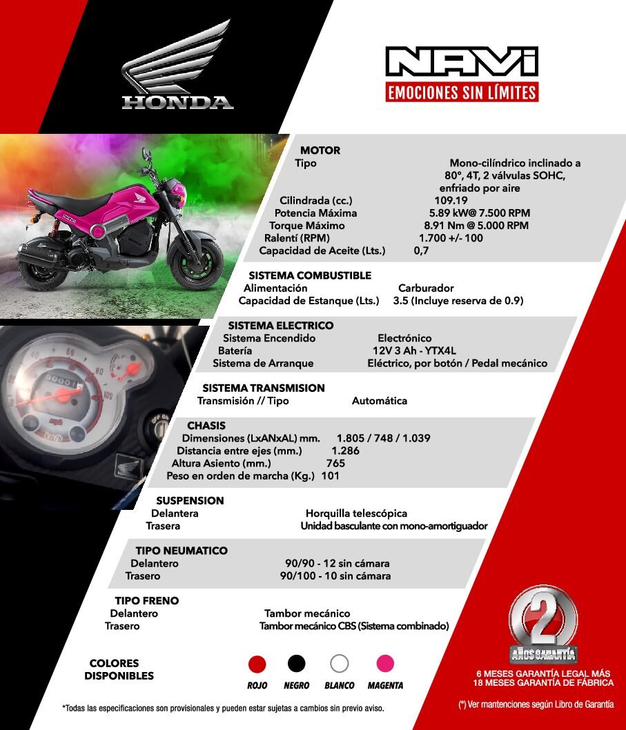 Un diseño único, no es una scooter, no es una sport, ¡es una NAVI! Pensada para tu espíritu joven y tus ganas de llegar a todas partes, la Navi Lite es una moto dinámica, moderna y deportiva.